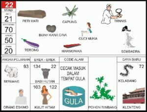 - Buku Mimpi = Peti Mati – Sayuran Terong Hewan Capung – Buah Kana Cina Sedang Cuci Muka – Harmonika – Bola Tenis – Sembadra Hewan Beruang – Orang Eskimo